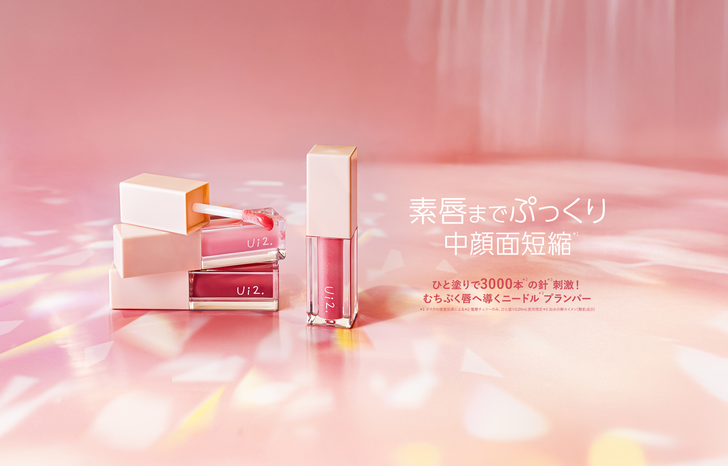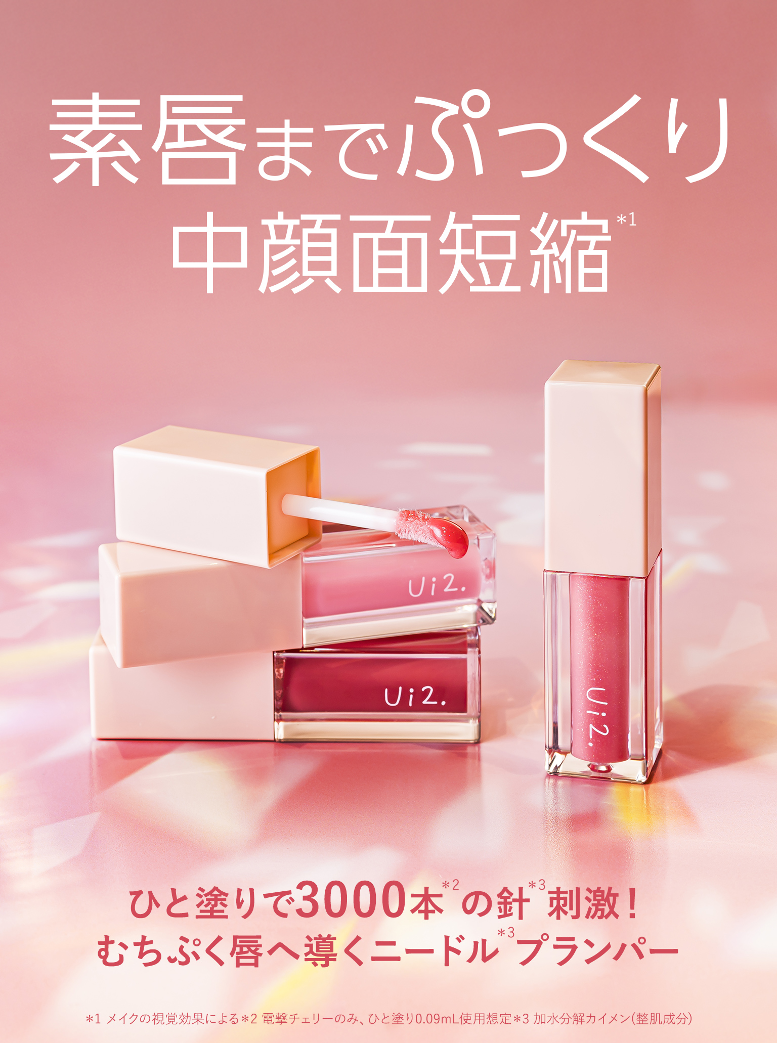 ひと塗りで3000本*3の針*1刺激!ニードル*1高配合、バルーン*4成分、W温感成分*5と熱感カラーで、素唇までぷっくり中顔面短縮*1。刺激レベルに合わせた3つのラインナップ。